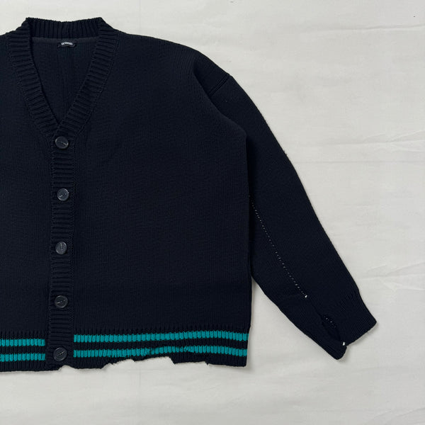 Detail: Extreme oversized fit, and distressing details on sleeve & hem.