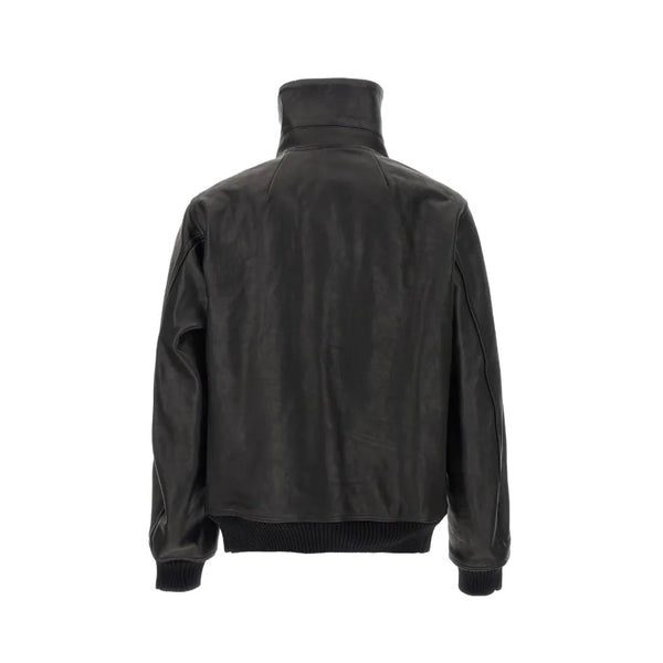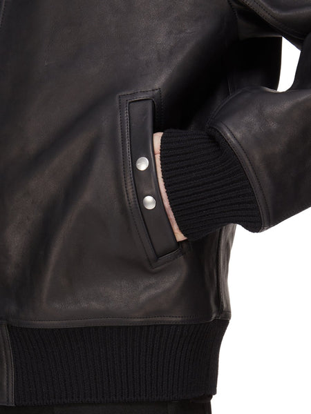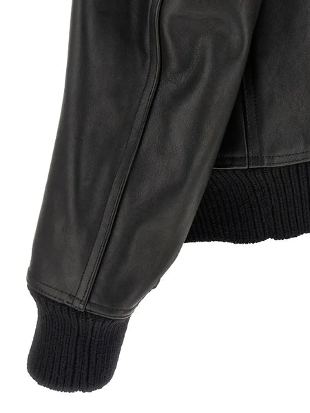 - Composition: 100% CALF LEATHER; KNIT RIB CUFFS AND BOTTOM 94% NEW WOOL + 5% NYLON + 1% ELASTANE.