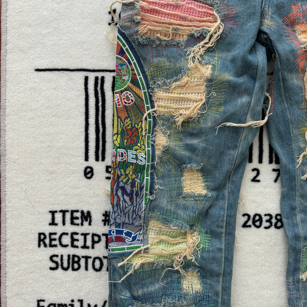 - Color: Washed Indigo/Blue/Multi-Colored.